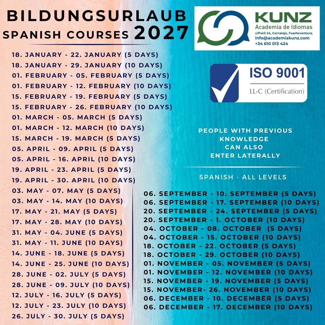 Corralejo is a relatively small town, so we adapt our offer to the monthly demand. We offer our courses throughout the year, organised by levels. For the levels we follow the Common European Framework of Reference for Languages and for this purpose we carry out level tests. We think it is important for our students to be in groups with other students of the same level and, if possible, with the same interests and learning goals.